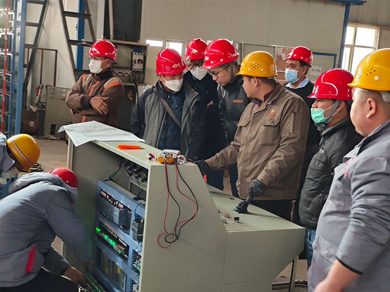 在理論指導之后,電工車間的張主任,又與客戶一起,帶上安全帽,來到電工車間。實踐指導客戶現場安裝線路,連接每一臺電器設備。