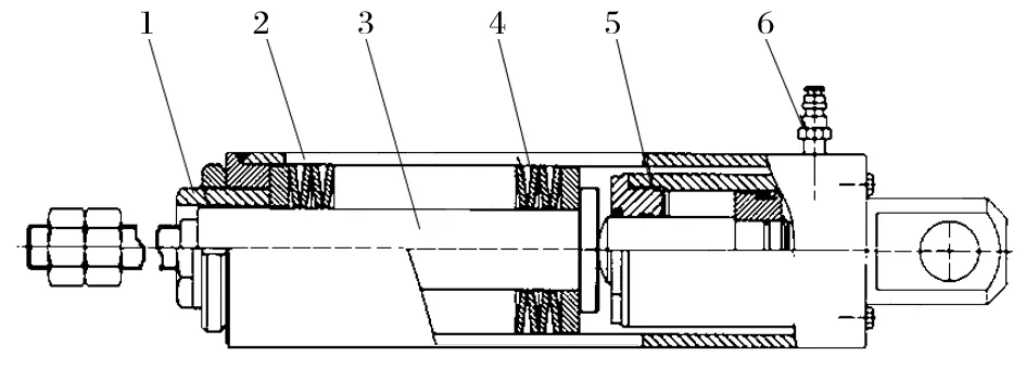 (5)驅動器結構集成化 改造時采用碟形彈簧串聯結構(見圖 2)。碟簧串和千斤頂置于一個套筒內,液壓彈簧驅動器成為一個整體結構(相當于盤式閘的閘頭)。該結構更加簡單,便于安裝、調試與維護,易于實現標準化、集成化、系列化。
